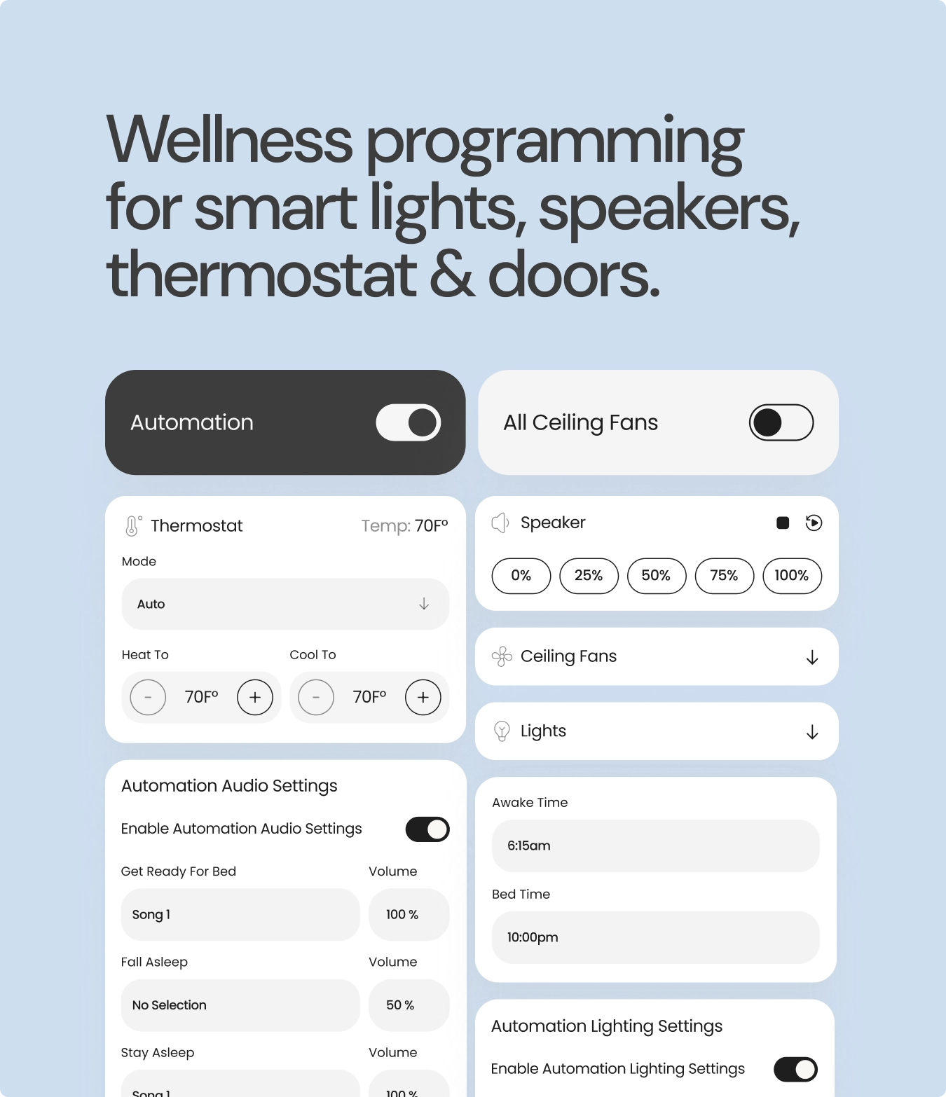 Our commitment to nurturing health and wellbeing underlies all of our campus amenities, the design and features of our apartments, and a patented, personalized smart home technology called WELLIFIZE. WELLIFIZE is a tool that places wellness solutions at the palm of your hand while enabling you to automate your home so that it becomes what we call a “Wellness Smart Home”.